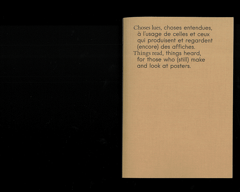 Ce livre a pour point de départ la question «Qu’est-ce qu’une bonne affiche ?» et s’en détourne au fur et à mesure qu’il se déploie, confronté à la complexité de cette interrogation, qui porte à la fois sur la vérité, la justesse, la fonctionnalité ou encore le bon goût d’une production graphique. Le texte résulte d’un travail d’entretiens menés au Signe par Léo Carbonnet et Léonore Conte durant une résidence de deux mois ; il peut être lu autant comme une longue phrase, un dialogue ou une liste plus silencieuse de principes. En octobre 2025, il a été enrichi d’une documentation visuelle extraite du fonds d’affiches du Signe, sélectionnée et disposée sous forme d’inserts par les étudiantes du DSAA design graphique et médiation du lycée Charles-de-Gaulle de Chaumont à l’occasion d’un workshop.